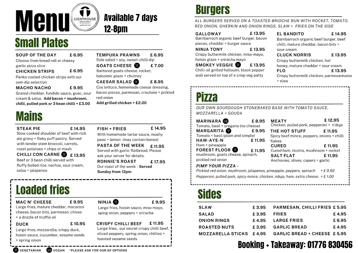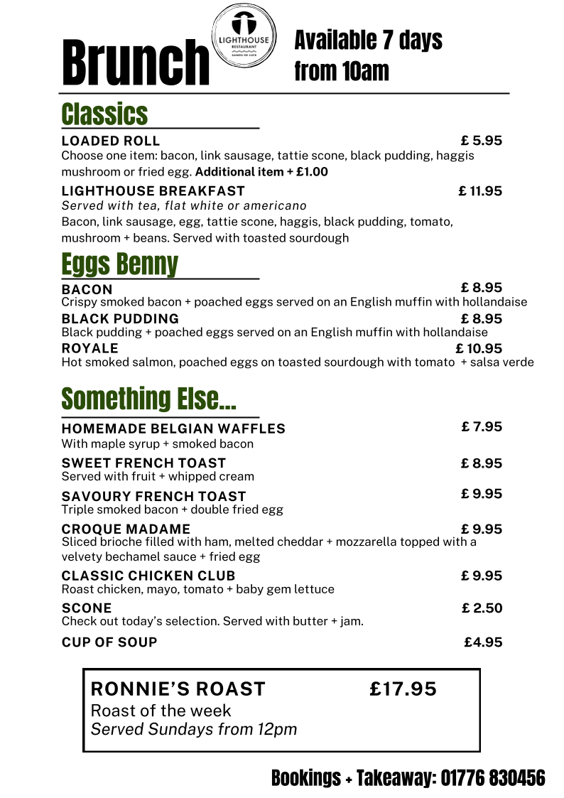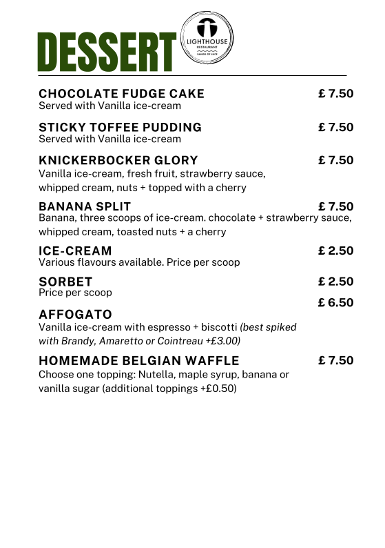 Introducing the menu at The Lighthouse. Bar & Restaurant @ Sands of Luce, where culinary excellence meets coastal charm. Nestled within the beautiful Sands of Luce Holiday Park in Sandhead, Stranraer, this welcoming eatery delights in providing an extensive selection of freshly cooked meals complemented by a diverse drink menu.